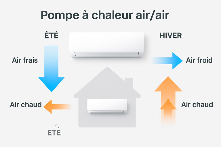 Une climatisation réversible air/air fonctionne comme une pompe à chaleur : elle extrait les calories (la chaleur) présentes dans l'air pour les transférer d'un point A à un point B.