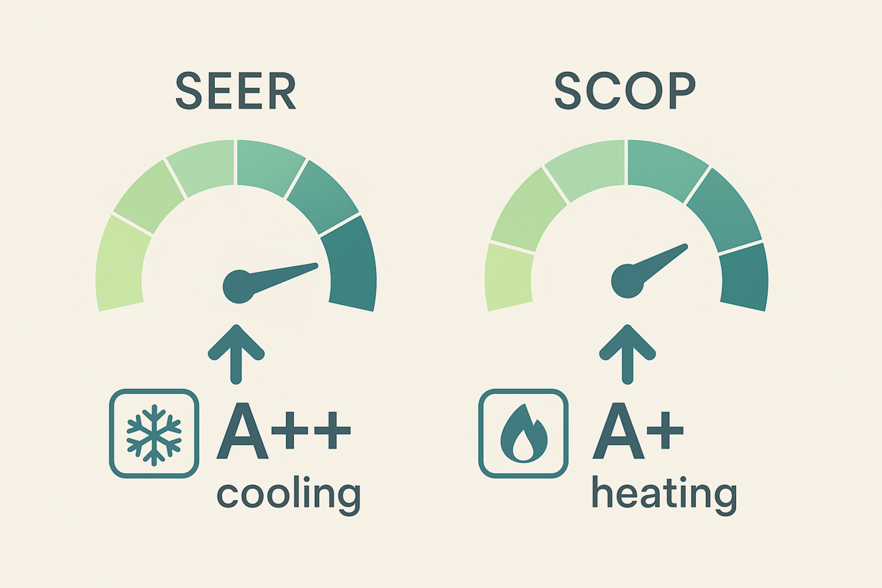 Avec un SEER de 7.1, elle restitue jusqu’à 7,1 kWh de froid pour chaque kWh consommé. Son SCOP de 4.2 permet quant à lui de générer 4,2 kWh de chaleur par kWh absorbé.