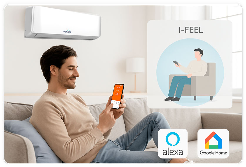 Enfin, le capteur I-FEEL intégré détecte votre position dans la pièce (via la télécommande) et adapte en temps réel la température au plus près de vous. Fini les zones froides ou les surchauffes : le confort est localisé, précis, personnalisé.