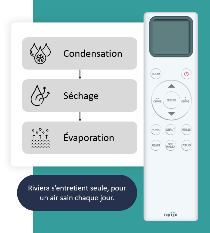 ➜ Évaporation finale : évite les moisissures, les mauvaises odeurs et prolonge la durée de vie du système.