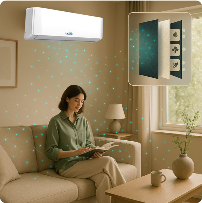 Profitez d’un air pur, d’une température maîtrisée et d’un silence absolu dans un appareil aussi discret qu’élégant.